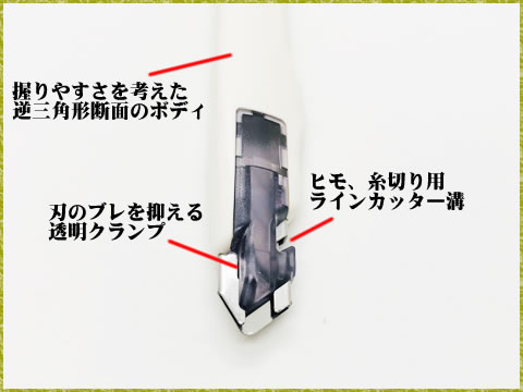このカッターの変わった形状は、この特徴があるからです。