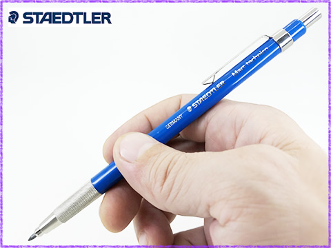 主に製図用の筆記具、芯ホルダーです。製図用ですが、その他の通常の筆記にも使用できます。鉛筆と同じ2mm芯ですので、0.5mmのシャープペンでは細すぎるという方にぴったりです。ホルダー芯は、こちらからラインアップしてありますので、あわせてご覧ください。