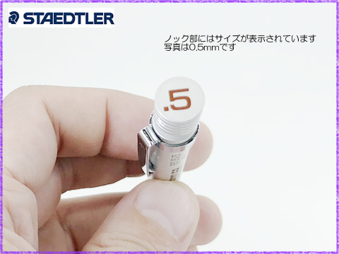 製図用のシャープペンシルです。細さは4種類あり、0.3mm、0.5mm、0.7mm、0.9mmです。