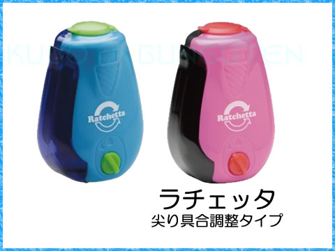 芯先を2段階に調整できる、コンパクトサイズの鉛筆削りです。一番の特徴は「ラチェット機構」。普通のコンパクトサイズ鉛筆削りは、